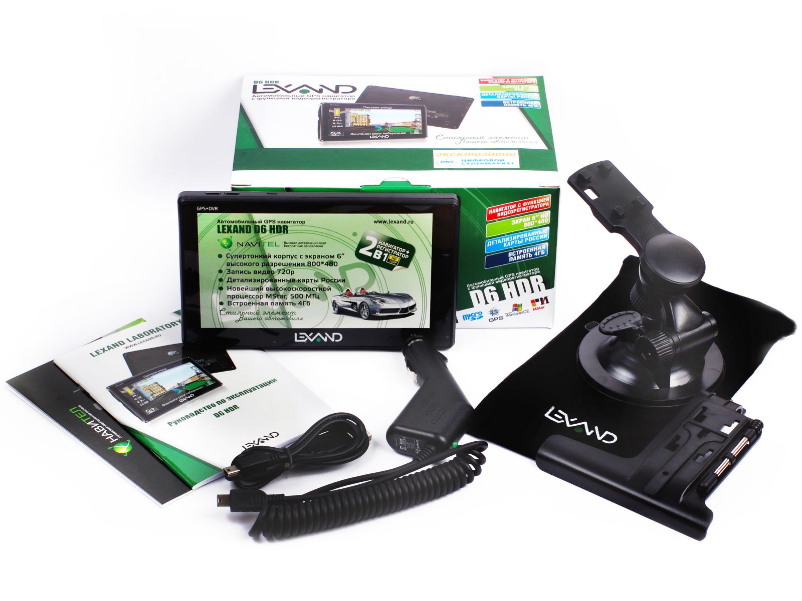 • GPS-навигатор со встроенным видеорегистратором LEXAND D6 HDR и предустановленными картами России "Навител Навигатор 5"