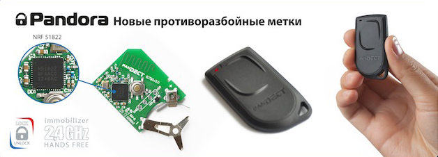 Управляют работой иммобилайзера миниатюрные метки. Схема работы здесь следующая: даже если режим охраны выключить брелоком или телефоном, двигатель все равно останется заблокирован, пока система не получит сигнал от метки (которую вы можете носить с собой в кармане или сумке). А если включить режим «Hands free», то вам и вовсе ничего не надо для управления охраной, кроме метки: как только вы подойдете к авто, охрана отключится, а двери разблокируются.
