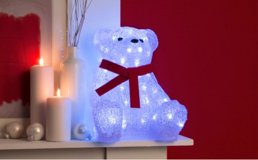Световая фигура сделана в виде симпатичного мишки. с красным шарфиком. А 60 ярких светодиодов белого цвета делают обычного игрушечного медведя просто волшебным! Световой мишка оригинально украсит ваш дом! Если вы его поставите его на полочку на видном месте, то внимание ваших гостей просто обеспечено!