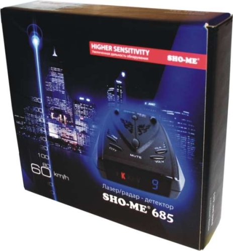 Автомобильный радар-детектор Sho-Me 685 обнаруживает полицейские радары, работающие в диапазонах K, Ultra-Kи Ka. Помимо этого, прибор с легкостью определяет лазерные радары. При обнаружении полицейского оборудования на дороге, на дисплее детектора появляется сообщение, содержащее диапазон патрульного радара и приблизительное расстояние до него.