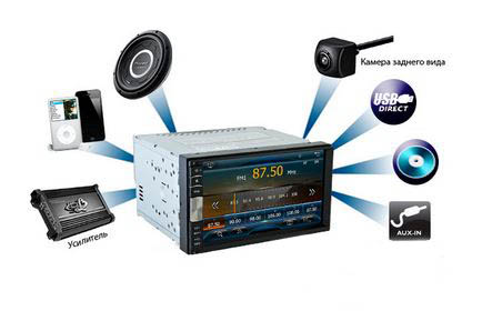 Автозвук устанавливается в штатное 2DIN место на любой автомобиль.