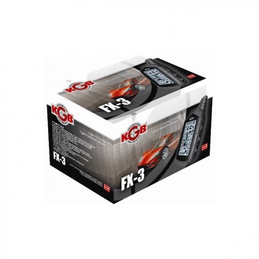В состав KGB FX-3 ver.2 входит брелок с тремя кнопками, который работает по курсорному принципу выбора режимов. Основной брелок оснащен информативным жидкокристаллическим дисплеем. Помимо своих основных функций, брелок имеет некоторые специальные опции - часы, будильник и таймер. Дальность связи основного брелока с системой составляет приблизительно 600 метров, причем дальность работы на прием сообщений - до 1200 метров. Для надежной работы сигнализации, брелок оснащен ручной и автоматической функцией проверки нахождения в зоне связи. Помимо основного брелока, в комплект поставки входит дополнительный четырехкнопочный брелок с односторонней связью.