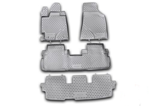 Серые автоковрики в салон Toyota Highlander не только улучшат внешний вид салона вашего автомобиля, но и надежно уберегут его от пыли, грязи и сырости, а значит, защитят кузов от коррозии. Полиуретановые автоковрики разработаны специально для автомобилей Toyota Highlander от 2001-2007 г.в.
