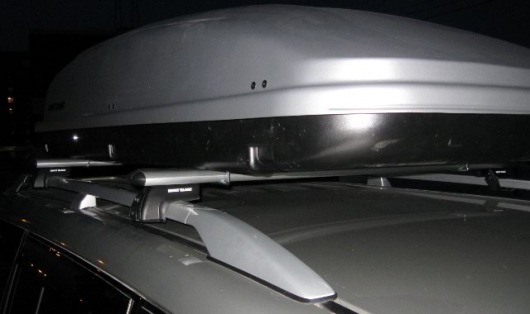 Обратите внимание! Сначала необходимо закрепить на крыше поперечины багажника, а потом уже на них ставится бокс. Если у вас нет поперечников, вы можете подобрать их для своей марки авто здесь.