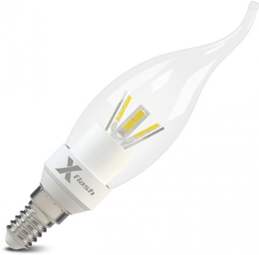 Светодиодная лампа X-Flash CANDLE E14 4.5W предназначена для общего и декоративного освещения. Имеет стеклянную колбу в форме пламени свечи. По форме, цоколю и размерам лампа абсолютно соответствует компактным люминесцентным лампам и лампам накаливания.