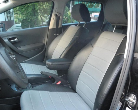 Вопросы и отзывы про Чехлы автомобильные для Volkswagen Polo V, хэтчбек, от 09 г.в. (черно-светло-серые, экокожа)