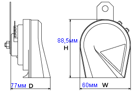 • Звук усиливается, благодаря спиралеобразной форме корпуса и специальному звукоотражающему материалу, из которого изготовлен автомобильный сигнал  Mitsuba HOS-02B.