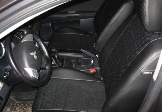 Вопросы и отзывы про Чехлы автомобильные для Mitsubishi Lancer X, хэтчбек, 2 л., от 07 г.в. (черные, экокожа)