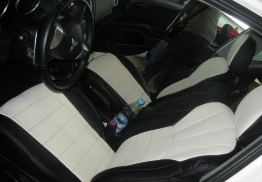 Вопросы и отзывы про Чехлы автомобильные для Mitsubishi Outlander XL от 09 г.в. (черно-белые, экокожа)