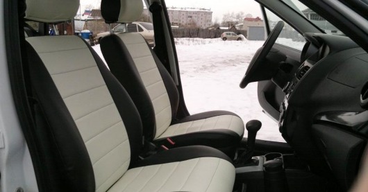 Вопросы и отзывы про Чехлы автомобильные для Lada Kalina, седан/хэтчбек (черно-белые, экокожа)