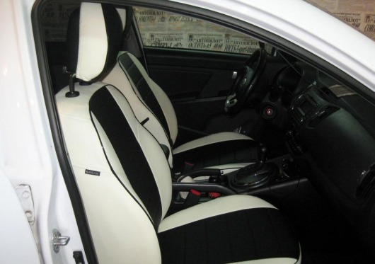 Вопросы и отзывы про Чехлы автомобильные для Kia Sportage I (бело-черные, экокожа)