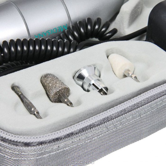 Маникюрный набор Medistyle S имеет 5 насадок с сапфировым абразивным напылением. Такое напыление неизнашиваемо, таким образом, набор прослужит вам очень долго.