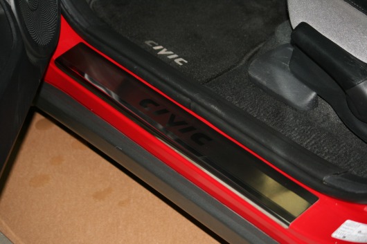 Накладки на пороги дверей Honda Civic не только обеспечивают защиту верхней и боковой поверхности внутреннего порога, но и отлично вписываются в интерьер автомобиля, подчеркивая его стиль и индивидуальность. C монтажом проблем не возникнет: установка накладок на внутренний порог для Honda Civic производится на штатные места с помощью скотча 3M.