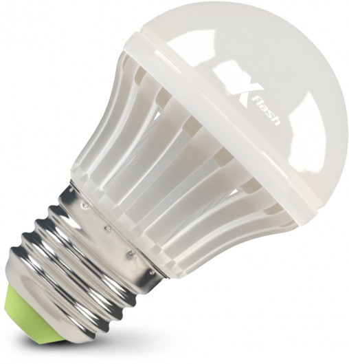 Светодиодная лампа X-Flash Bulb E27 BMC P 4W предназначена для общего освещения. Колба матовая, имеет форму полусферы. По форме, цоколю и размерам соответствует аналогичным люминесцентным лампам и лампам накаливания. Данная модель — первая лампа с углом освещения 360º, благодаря чему корпус светится со всех сторон. Она рассчитана на напряжение 220 В. Мощность диодной лампы X-Flash — 4 Вт., яркость — 450 Лм, а температура свечения – 3000 K (это желтый свет).