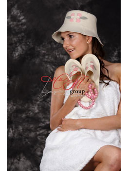Колпак из натурального материала — незаменимая вещь, без которой вообще не рекомендуется пребывание в парной. Он защитит голову и волосы от перегревания, так как температура в парилке на высоте человеческого роста гораздо выше, чем у пола. Кроме того, стильный дизайн колпака подчеркнет вашу женственность и обаяние.