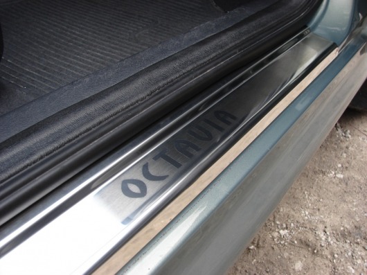 Внутренняя накладка на порог Skoda Octavia Tour  — это аксессуар автомобильного тюнинга, который защищает внутренний порог от механических повреждений при посадке и высадке из машины. Декоративные накладки с рисунком на внутренние пороги предназначены для автомобилей Skoda Octavia Tour от 2009 г.в.