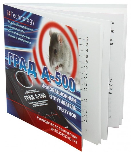Отпугиватель ГРАД А-500 — эффективное средство для борьбы с вредителями: мышами, крысами, кротами, белками. Основное его преимущество — изменяющийся "рисунок" звукового сигнала, который не дает грызунам адаптироваться к работе устройства. Абсолютно безопасен для людей и животных (кроме декоративных крыс и хомяков), подходит для использования как в быту, так и внутри производственных помещений.