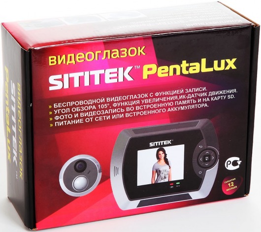 Дверной видеоглазок Sititek PentaLux — камера, совмещенная со звонком и ЖК-дисплей размером 2,8". Блок с монитором крепится на внутренней стороне двери. Благодаря видеоглазку, вы сможете отчетливо рассмотреть, кто стоит за дверью, в отличие от обычного глазка. Система умеет делать фотографии по сигналу датчика движения, поддерживает возможность ручного включения видеозаписи, что позволит сохранить ваш диалог с посетителем. Вся информация сохранится на карту памяти.