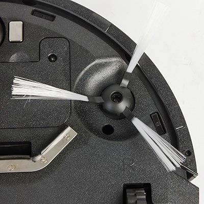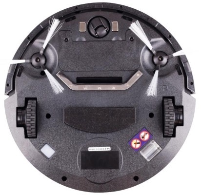 Устройство приводится в движение встроенным электрическим двигателем и опирается на три колеса: одно из них опорное, два других активные. Такая схема обеспечивает компактную и надежную маневренность по дому. Также двигатель приводит в действие 2 чистящие щетки пылесоса по бокам.