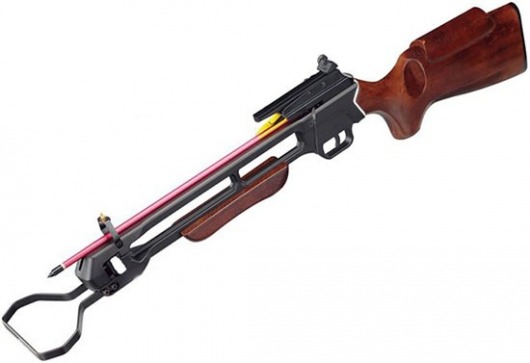 Арбалет имеет механический прицел с 2 регулировочными колесиками для вертикальной и горизонтальной поправки. При необходимости можно прикрепить к оружию коллиматорный или оптический прицел (приобретаются отдельно) с помощью 11-миллиметровой прицельной планки типа "ласточкин хвост". Лучше всего подходят к данной модели коллиматорный прицел 1х30 и оптический прицел 4х20.