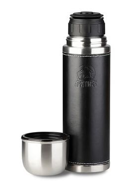 Термос кожаный, с узким горлом.