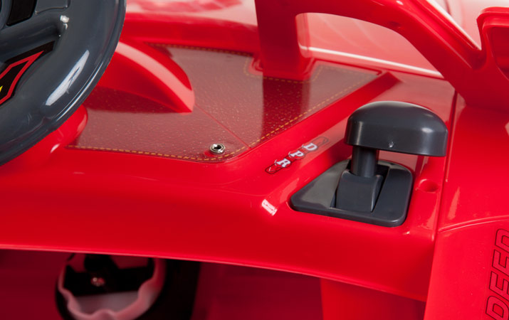 Благодаря 2-м электродвигателям общей мощностью 90 Вт, детский электромобиль на аккумуляторе способен развить скорость до 6 км/ч. Всего предусмотрено 2 скоростных режима.