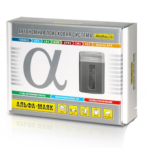 Внушительной отличительной чертой АвтоФон Альфа-Маяк является наличие чип-SIM-карты, предоплаченной на весь период использования устройства — приобретать и устанавливать другие SIM-карты и постоянно пополнять счет не надо. Маяк поддерживает позиционирование по GPS и Глонасс и, если нужно, использует LBS-локацию (по базовым GSM-вышкам).