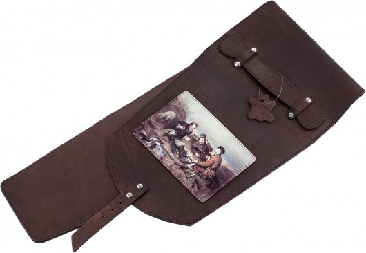 • Все шампуры хранятся в оригинальном чехле из натуральной кожи, который украшен репродукцией знаменитой картины Перова "Охотники на привале" и внешне напоминает колчан для стрел.