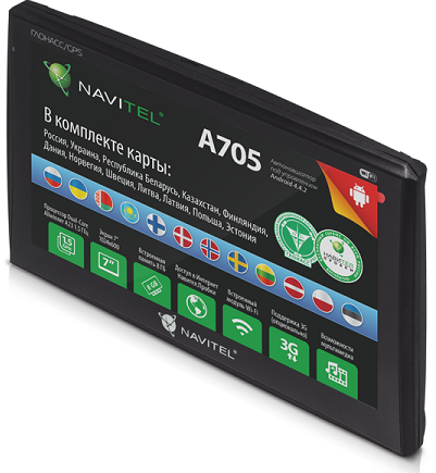 Автомобильный GPS навигатор Navitel A705 проложит оптимальный маршрут, заранее предупредит о поворотах, пробках или о зонах контроля скорости! Навигатор Navitel поддерживает систему ГЛОНАСС. Главное, что дает использование в навигаторе совместного сигнала GPS и ГЛОНАСС — это точность и надёжность. Ведь чем большее количество сигналов от спутников примет ваш навигатор, тем точнее будет определено ваше местоположение и меньше шансов потерять навигацию. Автомобильный навигатор поддерживает навигационное программное обеспечение Навител 9.3 и предустановленные карты России, Украины, Республики Беларусь, Казахстана, Финляндии, Дании, Норвегии, Швеции, Литвы, Латвии, Польши и Эстонии. Вам достаточно только указать конечный пункт!