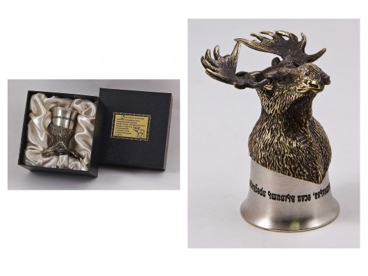 • Основание стопки в виде головы лося изготовлено из латуни художественным литьем.