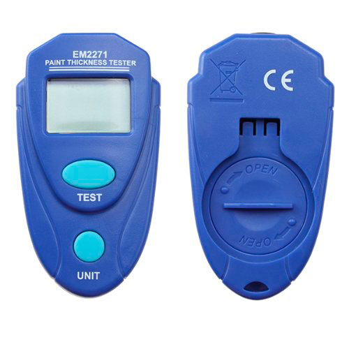 Толщиномер EM2271 - устройство для определения толщины лакокрасочного покрытия металлических поверхностей автомобиля. Незаменимое устройство для кузовного ремонта или покупки подержанного транспортного средства. Позволяет определить элементы кузова, которые подвергались перекраске и оценить качество проделанных работ. Заводская окраска всегда равномерная и слой достаточно тонкий, при перекраске в любом автомобильном сервисе слой будет значительно толще, а в случае серьезных повреждений и рихтовки - к покрытию добавится ещё и толщина шпатлевки.