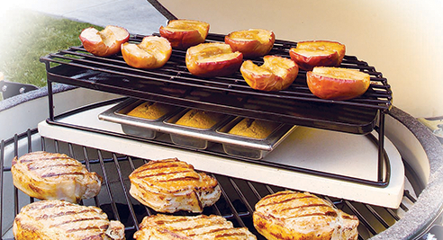 Дополнительная чугунная решетка в форме полумесяца с поддоном предназначена специально для керамических грилей Big Green Egg XL. Используйте ее совместно с основной решеткой — так вы сможете создать "второй" уровень, чтобы увеличить полезную площадь гриля. Полукруглую решетку можно также комбинировать с керамическим камнем для выпечки в форме полумесяца.