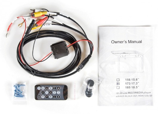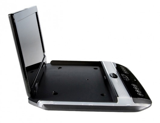 В автомобильном мониторе отсутствует DVD-привод, поэтому его толщина составляет рекордно малые 2 сантиметра. На потолке машины он будет почти незаметен. Размеры основания - 25,7х28,3 см.