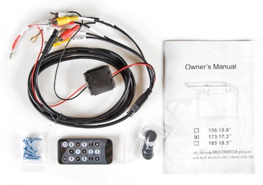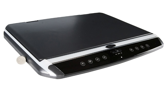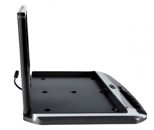 В мониторе отсутствует DVD-привод, поэтому его толщина составляет рекордно малые 3 сантиметра. На потолке машины он будет почти незаметен. Размеры основания - 36,9 на 48,2 см.