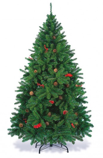 Искусственная сосна «Новогодняя сказка» от ЕлкиТорг по внешнему виду совершенно неотличима от настоящей живой ели. Стройный конусовидный силуэт и пушистая зеленая хвоя с настоящими еловыми шишками и веточками рябины только подчеркивают это сходство. Такая елка высотой в 150 см станет настоящим украшением для вашего дома или офиса.