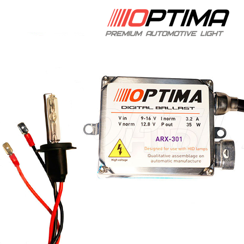 При монтаже не требует замены штатной проводки, поскольку полностью подготовлен к установке. Комплект ксенона Optima — революция на рынке автомобильного света. Ксенон отличается встроенными стабилизаторами, благодаря которым лампы не перегорают при резких перепадах напряжения и защищены от короткого замыкания.