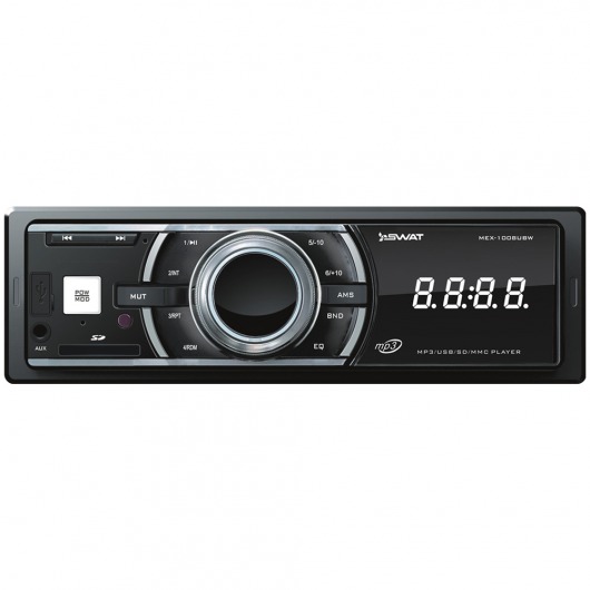 Автомобильная магнитола 1din Swat MEX-1008UBW – недорогое, но функциональное утройство. У MEX-1008UBW есть широкий набор мультимедийных технологий, которые позволяют выжать из устройства по максимуму. Ресивер способен выдавать звук на 4 колонки по 50 ватт. Есть возможность сохранения до 18 радиостанций на цифровом радио-тюнере. Кроме того, реализована возможность прослушивания аудиозаписей через карту памяти.