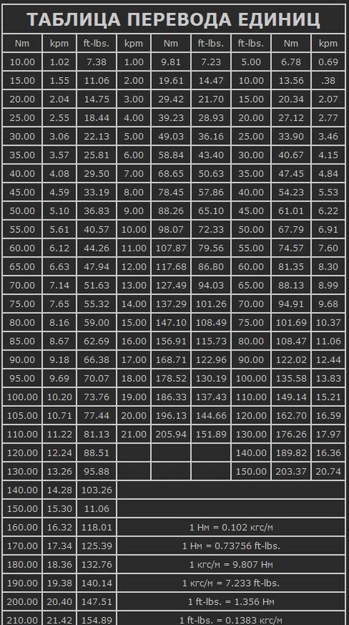 Таблицу динамометрического ключа BERGER BG-13STW (перевод единиц) смотрите ниже.