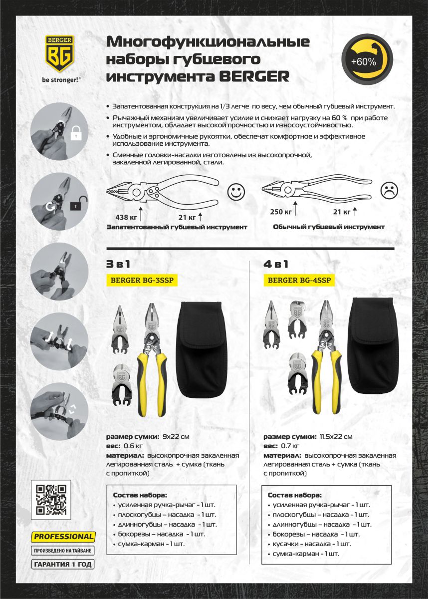 Вопросы и отзывы про Набор губцевого инструмента BERGER BG-4SSP (4 предмета)