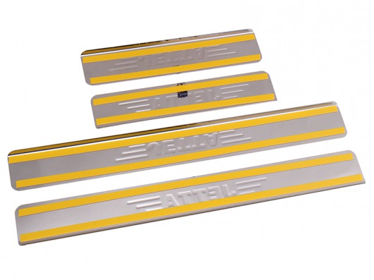 Внутренняя накладка на порог Volkswagen Jetta — это аксессуар автомобильного тюнинга, который защищает внутренний порог от механических повреждений при посадке и высадке из машины. Декоративные накладки с логотипом на внутренние пороги предназначены для автомобилей Фольксваген Джетта.