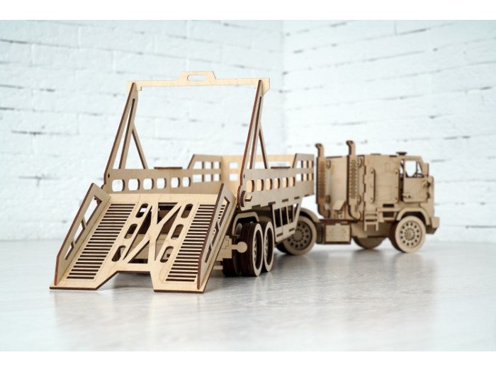 Кроме того, деревянный автовоз в сборе прекрасно ездит по любой поверхности. А еще вы можете открывать дверцы кабины, снимать прицеп и опускать погрузочный мостик. Сам же процесс сборки не только отлично развивают мелкую моторику и сенсорику, но и прекрасно способствует развитию глазомера. Также немаловажно, что такая игра тренирует в вашем ребенке терпеливость и усидчивость.
