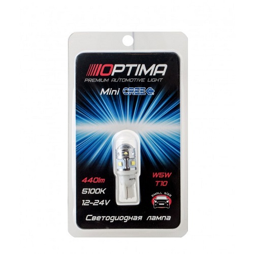 Светодиодные лампы Optima Premium W5W MINI CREE_XBD CAN 30W 12-24V 5100К – это габаритные лампы с увеличенной светоотдачей благодаря использованию технологии CREE. Такие лампы работают намного эффективнее, характеризуются более мощной светоотдачей.