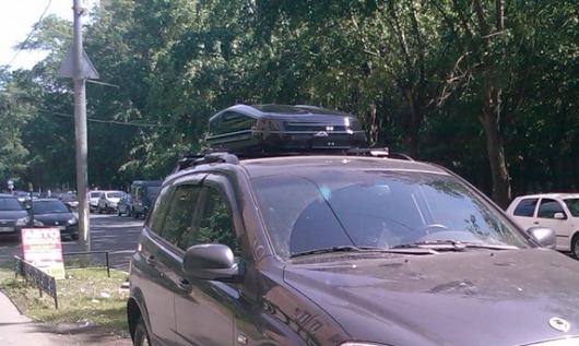 Обратите внимание! Автобокс на крышу устанавливается не на саму крышу автомобиля, а на багажник. Сначала необходимо закрепить на крыше поперечины багажника, а потом уже на них ставится бокс.