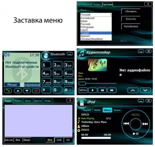 Прибор читает множество видео-, аудиоформатов и даже текстовые файлы: MP3, WMA, WAVE, MPEG1/2, MPEG4, WMV, JPEG, GIF, PNG, BMP, MS-Word, Excel, PowerPoint, Adobe PDF, *.txt. Для радио- и телелюбителей есть FM и аналоговый тюнеры. Кстати, музыку можно прослушивать, не прекращая при этом работу навигации.