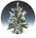 Искусственная новогодняя елка в серебристом горшочке «Искристая фантазия» станет замечательным украшением праздничного интерьера. Она представляет собой оригинальную композицию высотой в 0,91 м из белой искусственной елки, зеленых листочков и настоящих еловых шишек. Материал: леска.