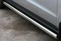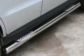 Боковые пороги на Hyundai ix35 из нержавеющей стали диаметром 76 мм не боятся коррозии, сколов и царапин и выдерживают большие нагрузки. Боковые подножки-пороги трубой с проступями сделаны специально для автомобилей Hyundai ix35 от 2010 г.в., легко устанавливаются и стильно смотрятся.