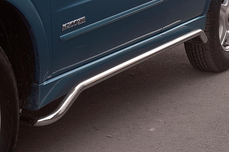 Боковые пороги на SsangYong Actyon Sport из нержавеющей стали диаметром 76 мм не боятся коррозии, сколов и царапин и выдерживают большие нагрузки. Боковые подножки-пороги трубой сделаны специально для автомобилей SsangYong Actyon Sport, легко устанавливаются и стильно смотрятся. В комплекте вы получите 2 подножки.