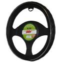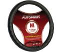 Оплетка на руль AP-130 изготовлена из имитации натуральной кожи с прострочкой и ребристыми вставками. Цвет: черный. Размер: М. Подходит на все типы рулевого колеса.
